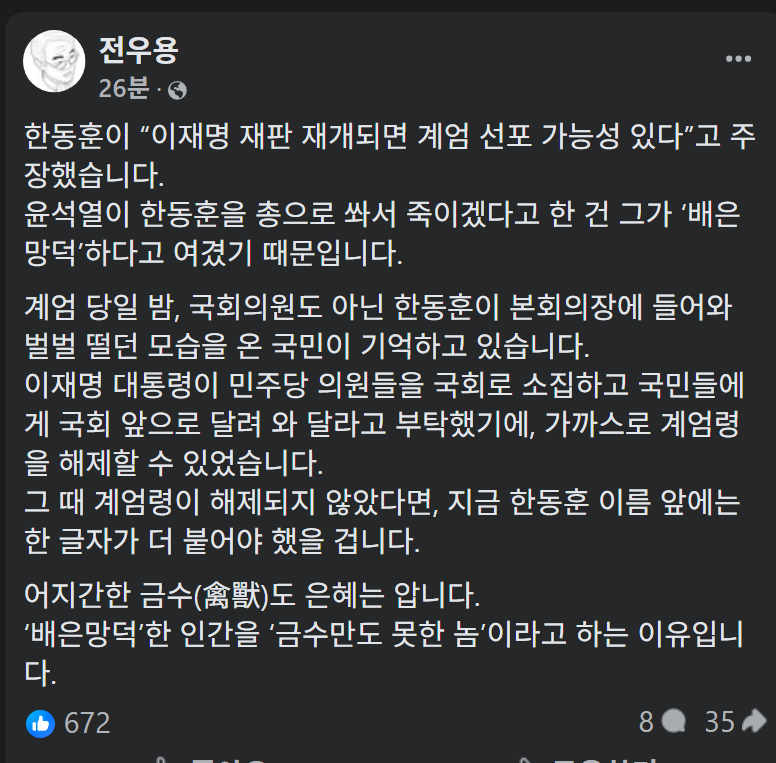 금수만도 못한 한동훈.