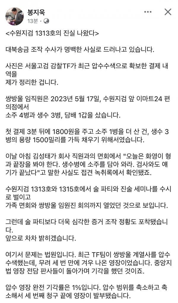 봉지욱 기자 폭로 터졌네요. - 대북송금 조작수사