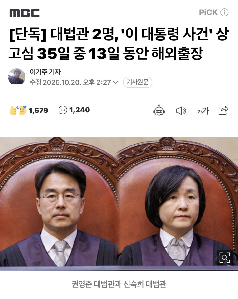 ■ 대법관 2명, '이 대통령 사건' 35일 중 13일 동안 해외출장
