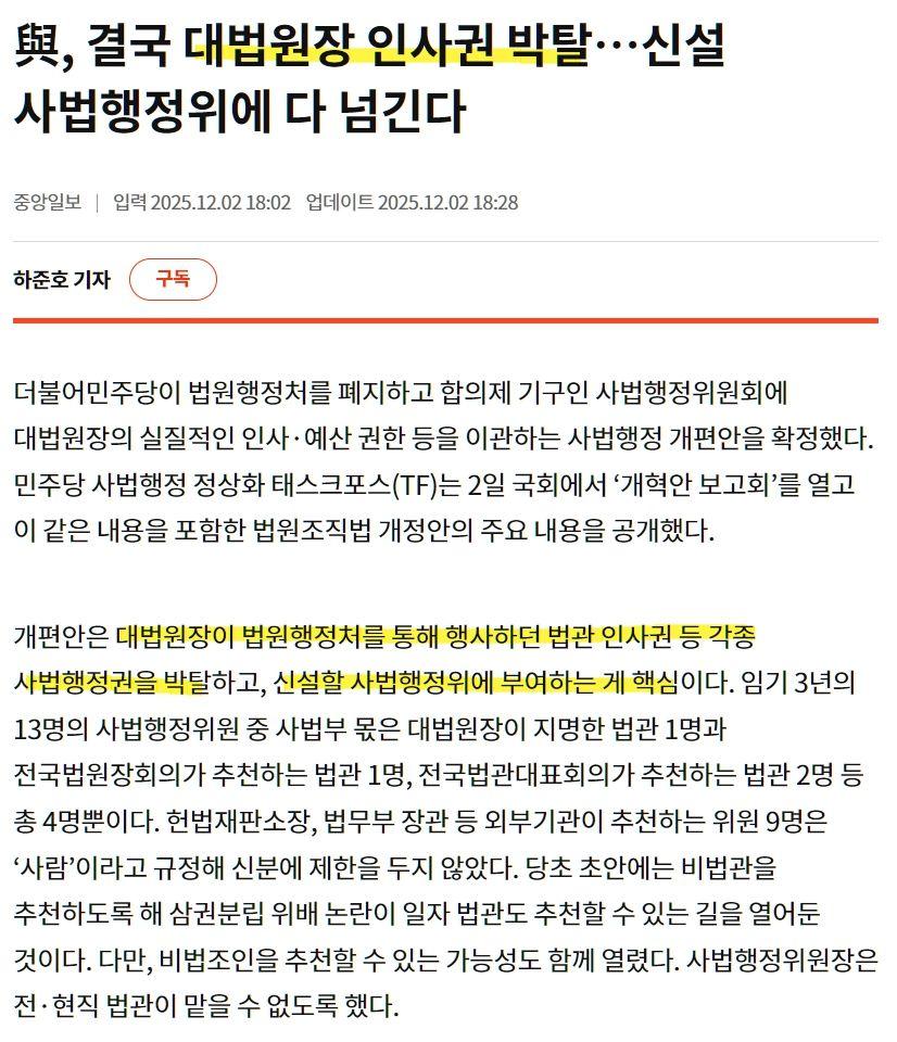 ,결국대법원장인사권박탈•••신설 사법행정위에다넘긴다